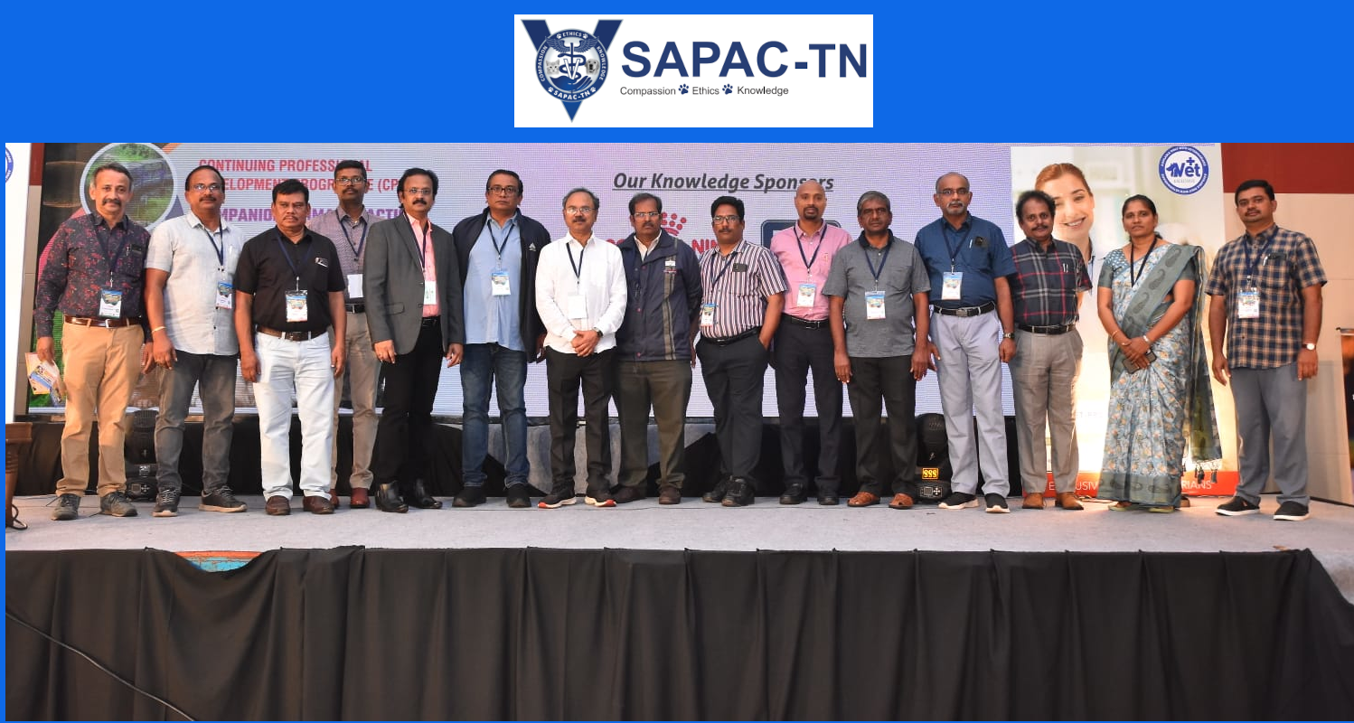SAPAC-TN is a veterinary professional and educational registered association for welfare of the pet/vet fraternity. Arranging seminar, workshops and Conferences exclusively for pet animal Practitioners.